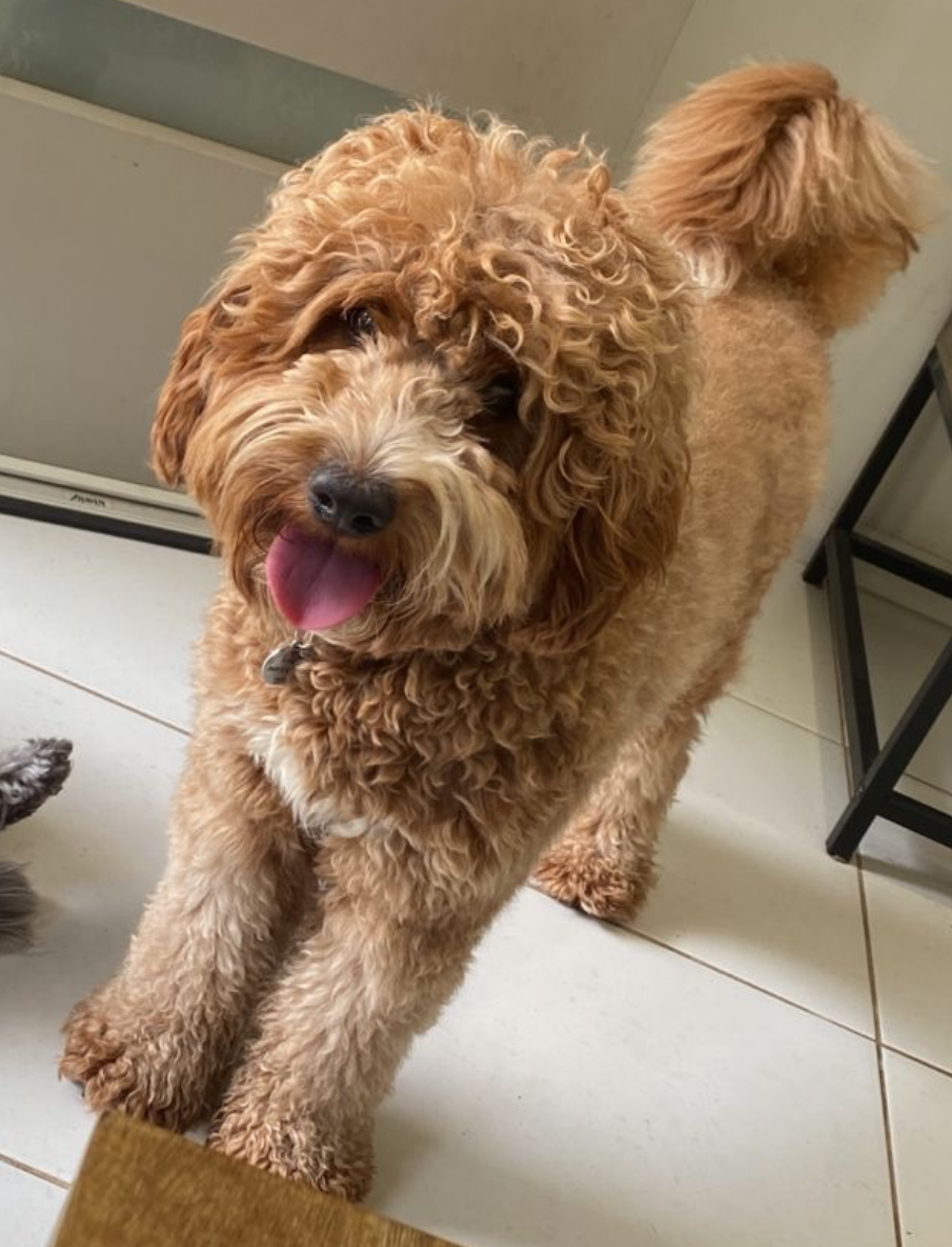 Stella is a loving and affectionate girl with a chocolate phantom merle zero curl coat. She weighs around 13kg.